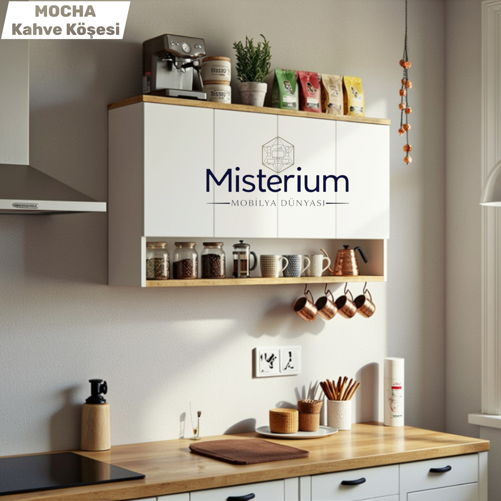 Misterium Mocha Duvara Askılı Kahve Köşesi ve Fincan Standı - Beyaz